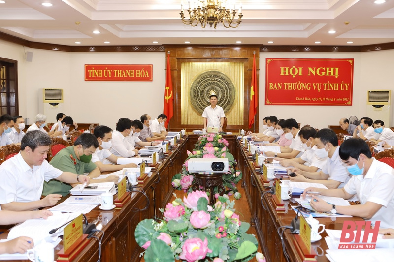 Đối với Dự thảo Nghị quyết của Ban Thường vụ Tỉnh ủy về tăng cường sự lãnh đạo của Đảng trong việc đẩy mạnh cải cách hành chính, cải thiện mạnh mẽ môi trường đầu tư kinh doanh, nâng cao chỉ số năng lực cạnh tranh tỉnh Thanh Hóa đến năm 2025, định hướng đến năm 2030, đồng chí Bí thư Tỉnh ủy nêu rõ: Đây là Nghị quyết nhằm cụ thể hóa để triển khai thực hiện Kế hoạch số 22 của Ban chấp hành Đảng bộ tỉnh khóa XIX về thực hiện khâu đột phá trong cải cách hành chính, một trong ba khâu đột phá mà Nghị quyết Đại hội Đảng bộ tỉnh lần thứ XIX đã xác định. Do kế hoạch 22 mới được ban hành, nên Ban Thường vụ Tỉnh ủy thống nhất để Ban cán sự Đảng UBND tỉnh chuẩn bị thêm một bước dự thảo Nghị quyết, báo cáo Ban Thường vụ Tỉnh ủy xem xét, quyết định tại hội nghị sắp tới.