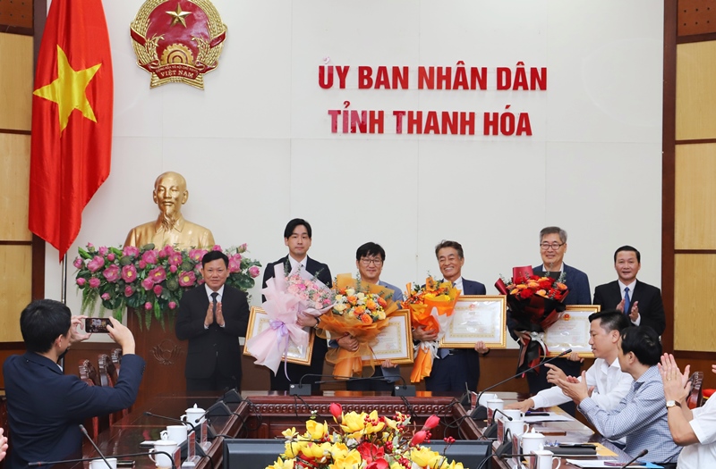 Thay mặt lãnh đạo tỉnh, Chủ tịch UBND tỉnh Đỗ Minh Tuấn đã tặng Bằng khen cho 4 cá nhân của Ban lãnh đạo Công ty TNHH Điện Nghi Sơn 2 đã có nhiều đóng góp cho sự phát triển kinh tế - xã hội của tỉnh Thanh Hóa giai đoạn 2018 – 2023 và trao quà lưu niệm cho đoàn công tác của Công ty TNHH Điện Nghi Sơn 2.
