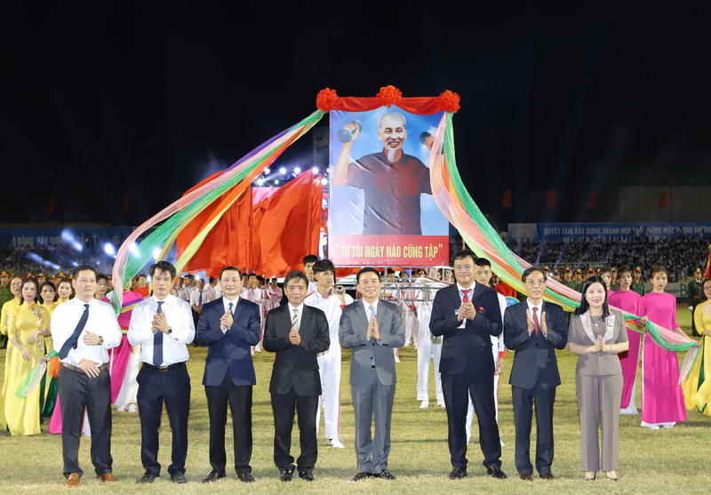 | Các đồng chí lãnh đạo tỉnh và lãnh đạo Bộ VH,TT&DL tại Lễ khai mạc Đại hội TDTT toàn tỉnh lần thứ IX – năm 2022. |