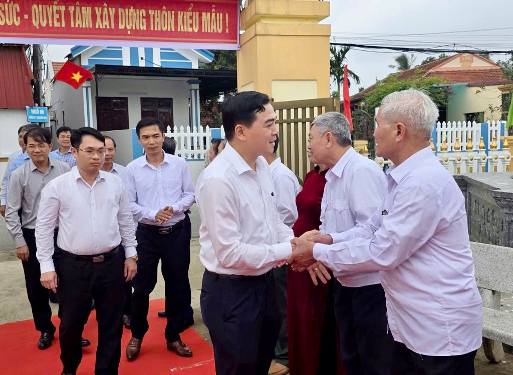 | Chủ tịch UBND tỉnh Nguyễn Hoài Anh về dự Ngày hội Đại đoàn kết toàn dân tộc với Nhân dân Khu dân cư thôn Đồng Lòng, xã Hoằng Lộc. |