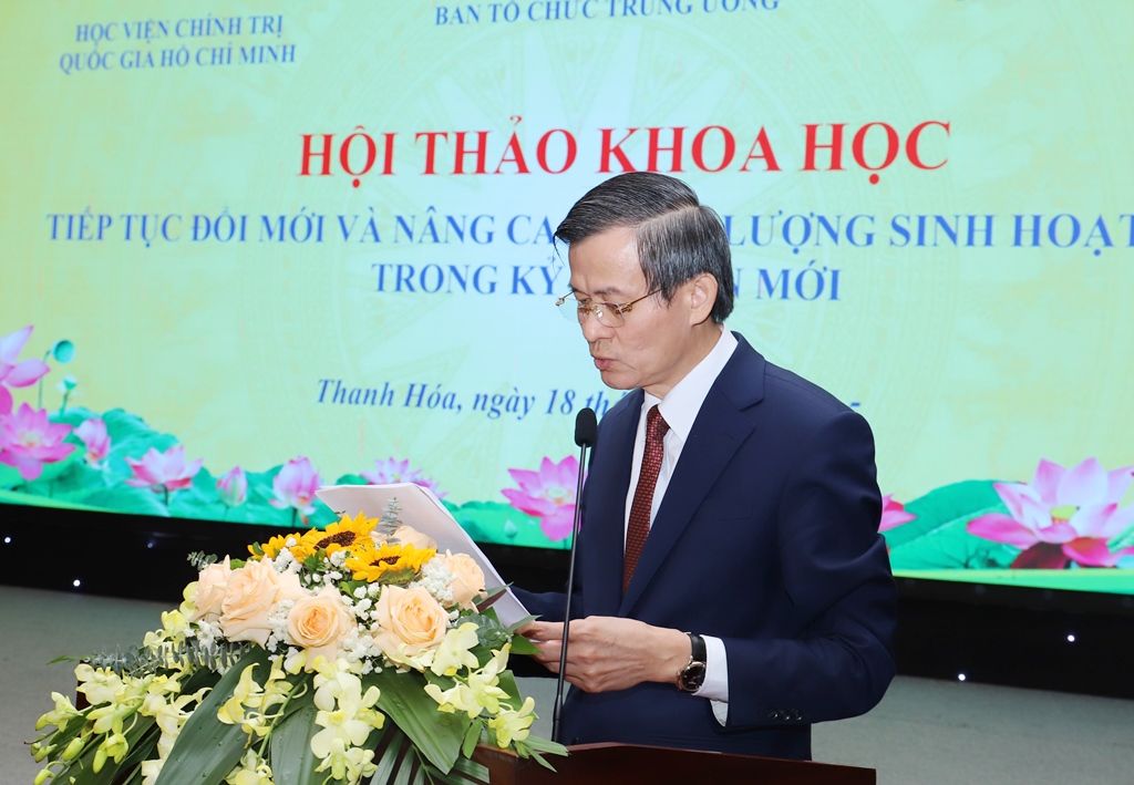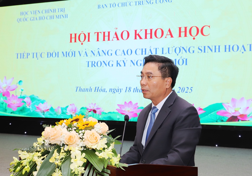 Sáng 18/11/2025, tại Thanh Hóa đã diễn ra Hội thảo khoa học “Tiếp tục đổi mới và nâng cao chất lượng sinh hoạt chi bộ trong kỷ nguyên mới”. Chương trình do Ban Tổ chức Trung ương, Học viện Chính trị Quốc gia Hồ Chí Minh phối hợp với Tỉnh ủy Thanh Hóa tổ chức thực hiện.