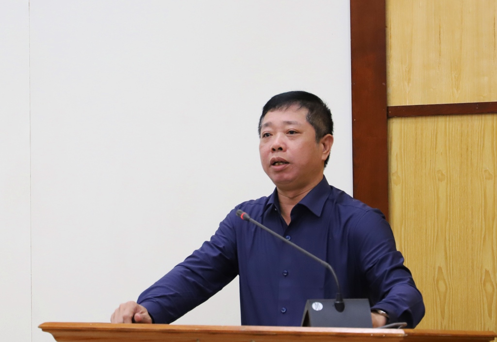 | Đại diện lãnh đạo Sở Nông nghiệp và Môi trường trình bày báo cáo tại hội nghị. |