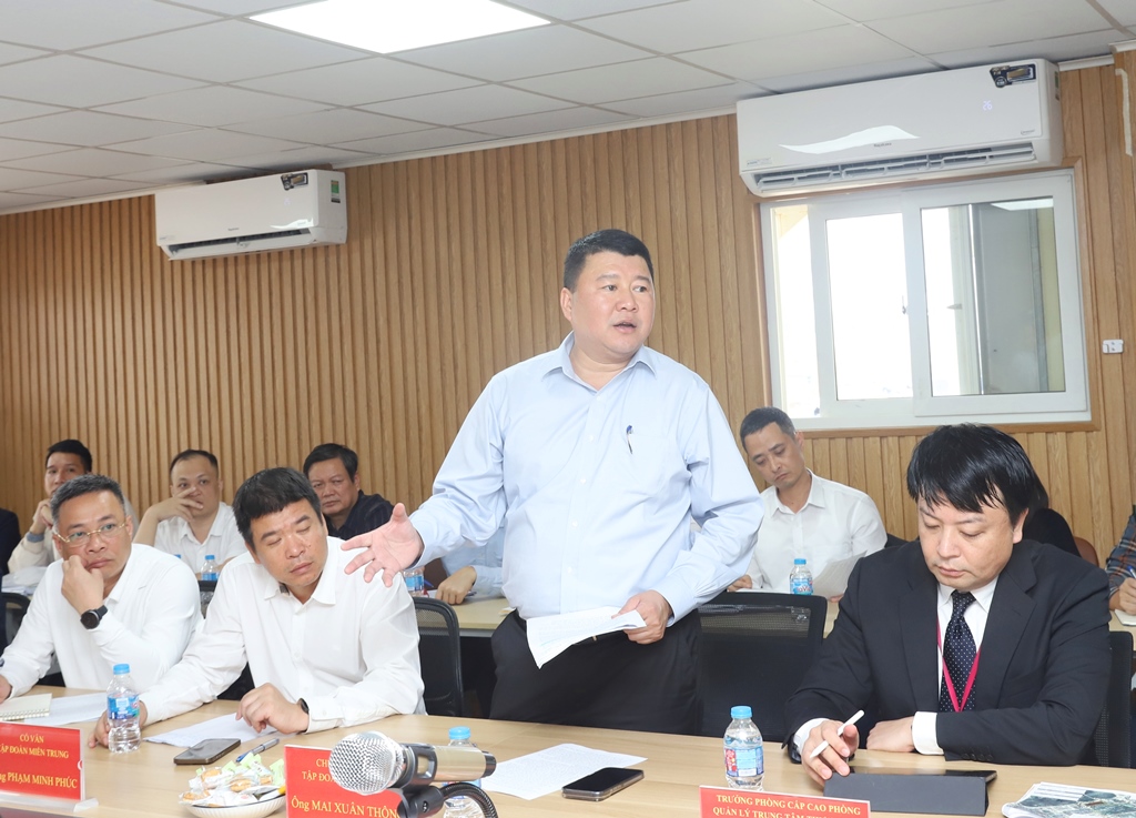 Ông Mai Xuân Thông, Chủ tịch Tập đoàn Miền Trung phát biểu tại buổi giao ban.