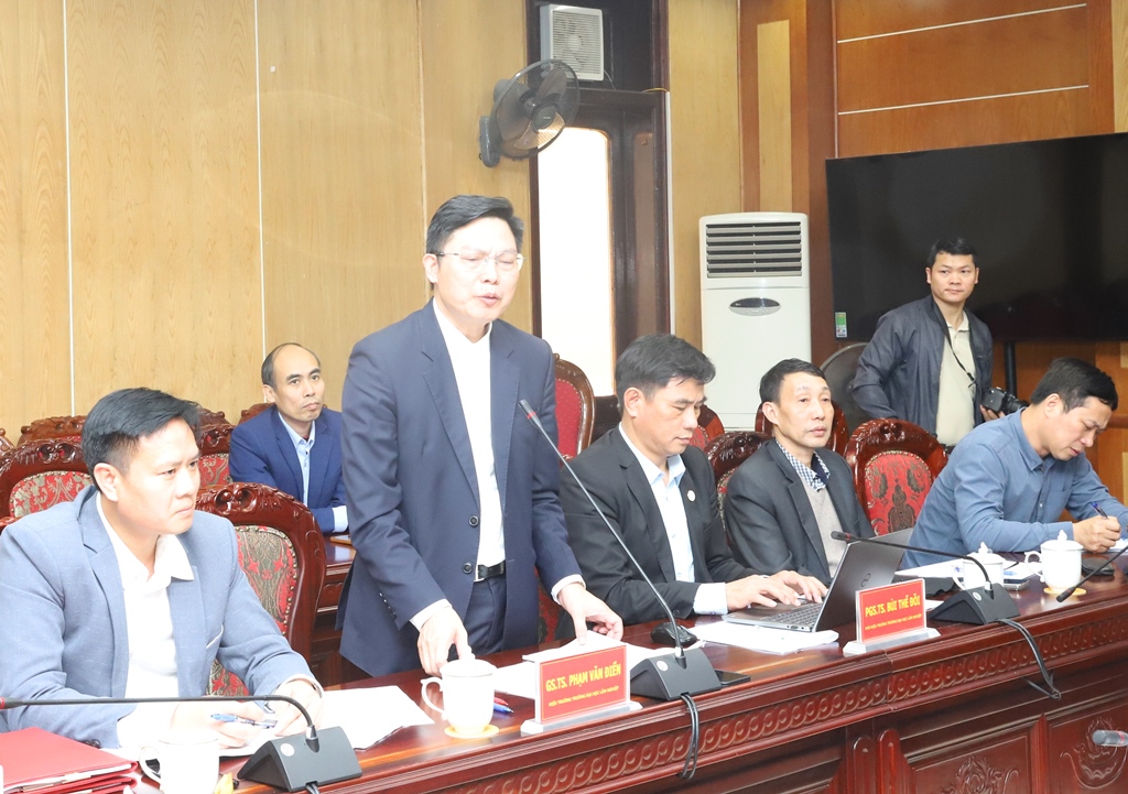 GS. TS Phạm Văn Điển, Hiệu trưởng Nhà trường phát biểu tại buổi làm việc.