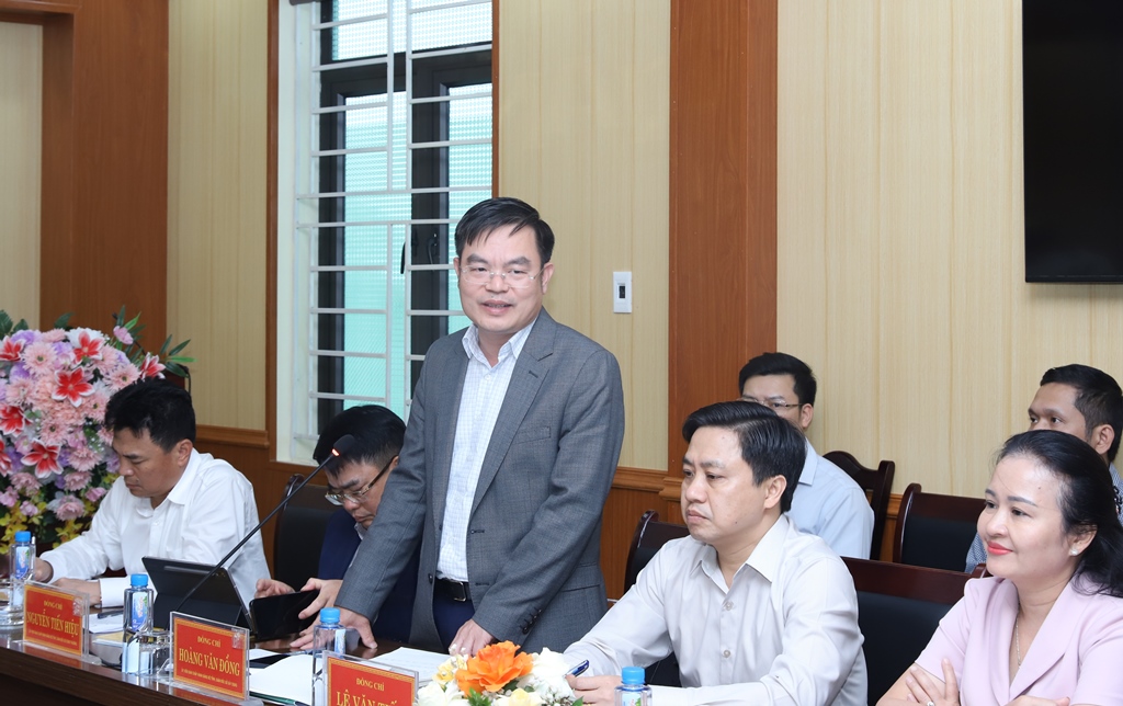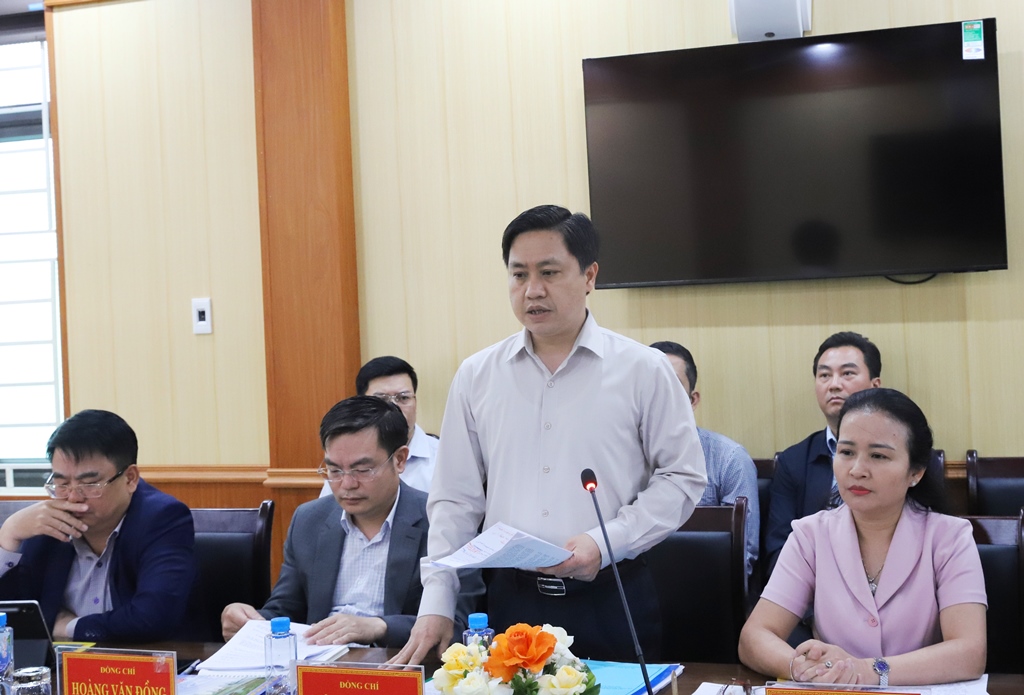 Đồng chí Hoàng Văn Đồng, Giám đốc Sở Xây dựng phát biểu ý kiến tại buổi làm việc.