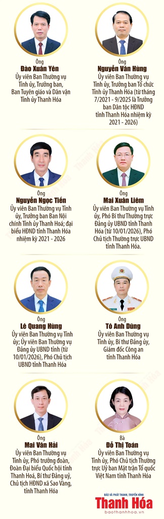 Danh sách các đồng chí Ủy viên Ban Thường vụ Tỉnh ủy tham gia ứng cử đại biểu HĐND tỉnh Thanh Hóa, nhiệm kỳ 2026-2031