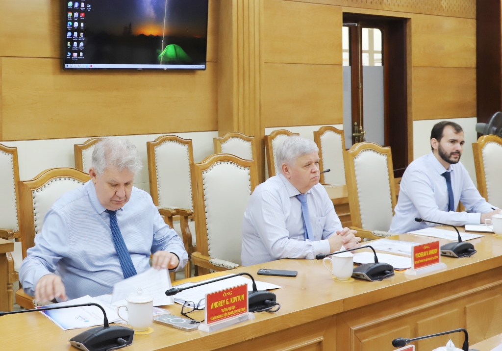 Tại buổi làm việc, ngài Vyacheslav N. Kharinov, Đại diện Thương mại Liên bang Nga tại Việt Nam cám ơn lãnh đạo tỉnh Thanh Hóa đã dành thời gian tiếp và làm việc với đoàn công tác. Tiếp đó, ngài Vyacheslav N. Kharinov đã chia sẻ thêm một số thông tin về Tập đoàn Novatek cũng như tình hình hợp tác giữa tỉnh Thanh Hóa với các đối tác Liên Bang Nga và việc quy hoạch Kho dự trữ LNG.