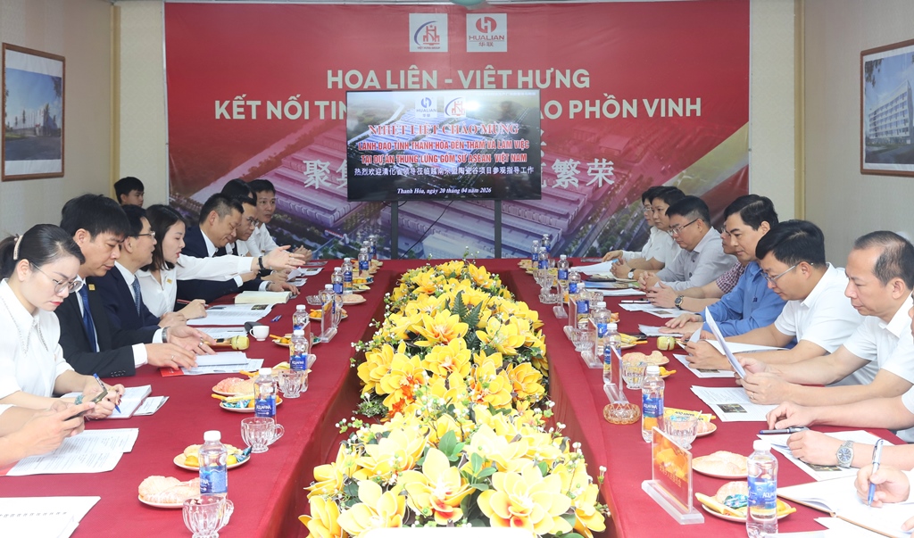 Phát biểu tại buổi làm việc, Chủ tịch UBND tỉnh Nguyễn Hoài Anh đánh giá cao và biểu dương tiến độ đầu tư dự án thung lũng gốm sứ Asean Việt Nam tại Thanh Hóa của Tập đoàn gốm sứ Hoa Liên - Hồ Nam. Đồng chí cam kết tỉnh Thanh Hóa sẽ đồng hành sát cánh cùng doanh nghiệp tháo gỡ khó khăn trong suốt quá trình thực hiện dự án. Chủ tịch UBND tỉnh mong muốn, từ thành công bước đầu của dự án, Tập đoàn Hoa Liên - Hồ Nam và các nhà đầu tư khác tiếp tục quan tâm tìm hiểu, đầu tư vào Thanh Hóa.