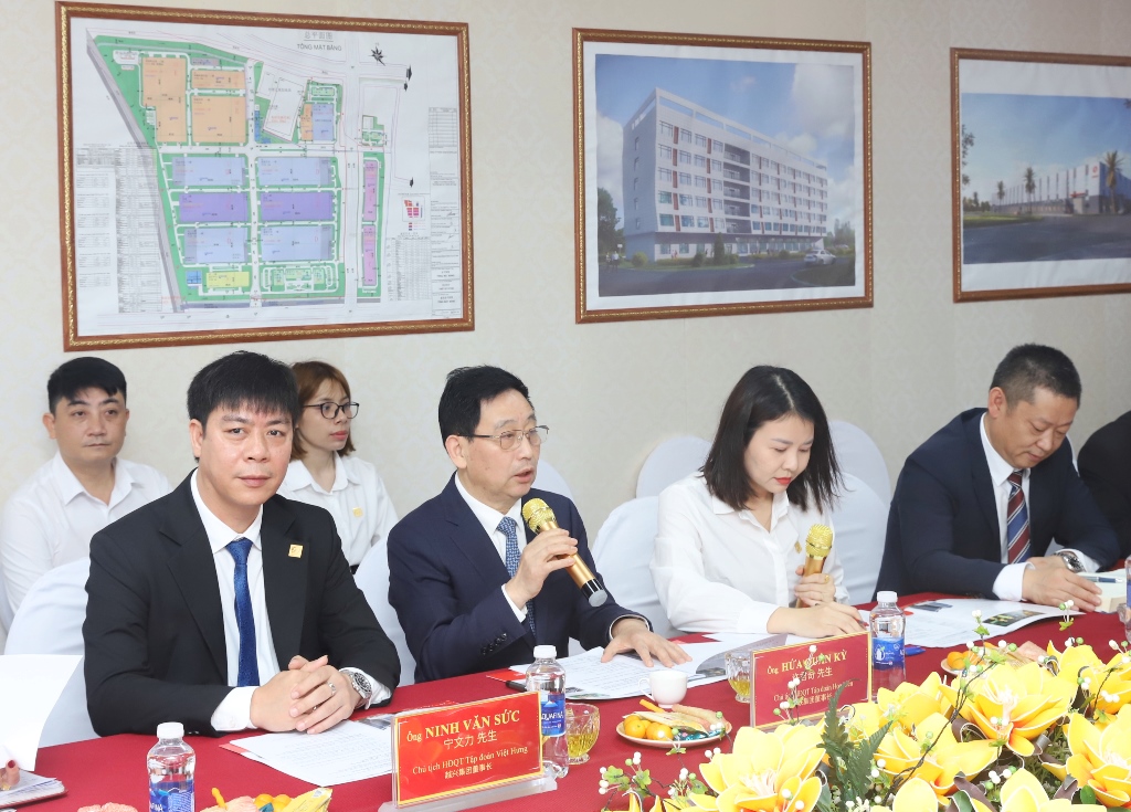 Ông Hứa Quân Kỳ, Chủ tịch Tập đoàn gốm sứ Hoa Liên – Hồ Nam, Trung Quốc báo cáo tiến độ tình hình thực hiện dự án.
