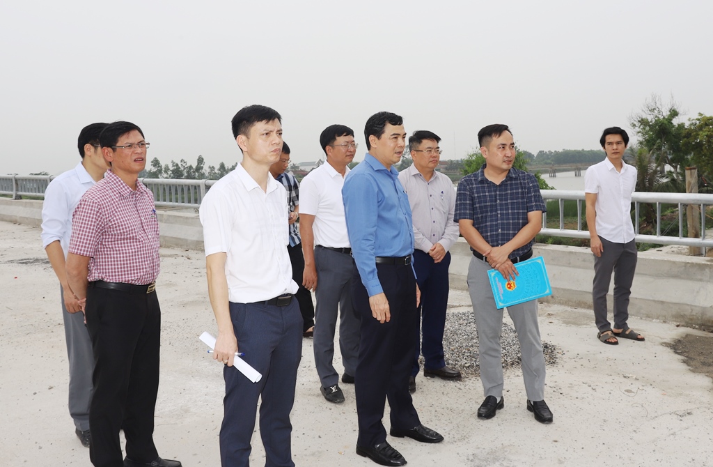 Tiếp đó, đoàn công tác đã đi kiểm tra một số dự án, công trình trọng điểm trên địa bàn tỉnh, gồm: dự án nâng cấp, cải tạo tuyến tỉnh lộ 505, huyện Nông Cống (cũ), tỉnh Thanh Hóa; dự án xây dựng cầu Ngọc Lẫm 2, xã Trường Giang, huyện Nông Cống (cũ); dự án Đường nối khu công nghiệp Tượng Lĩnh đi tỉnh lộ 525, huyện Nông Cống (cũ).