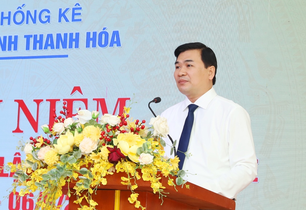 Đồng chí nhấn mạnh: Thanh Hóa đang bước vào giai đoạn phát triển mới với nhiều thời cơ, thuận lợi và khó khăn, thách thức đan xen; đặc biệt là sự phát triển nhanh chóng của khoa học công nghệ và đổi mới sáng tạo. Trong bối cảnh đó, vai trò của công tác thống kê càng trở nên quan trọng hơn bao giờ hết. Đồng chí lưu ý tập thể lãnh đạo, công chức, viên chức và người lao động ngành Thống kê Thanh Hóa cần tiếp tục phát huy tinh thần đoàn kết, cùng với những kinh nghiệm quý, cách làm hay, sáng tạo, hiệu quả, chủ động nắm bắt thời cơ, vượt qua khó khăn, thách thức, triển khai thực hiện tốt các nhiệm vụ được giao, góp phần quan trọng trong công tác lãnh đạo, chỉ đạo, điều hành của cấp ủy, chính quyền các cấp và hoạt động của các cơ quan, đơn vị.